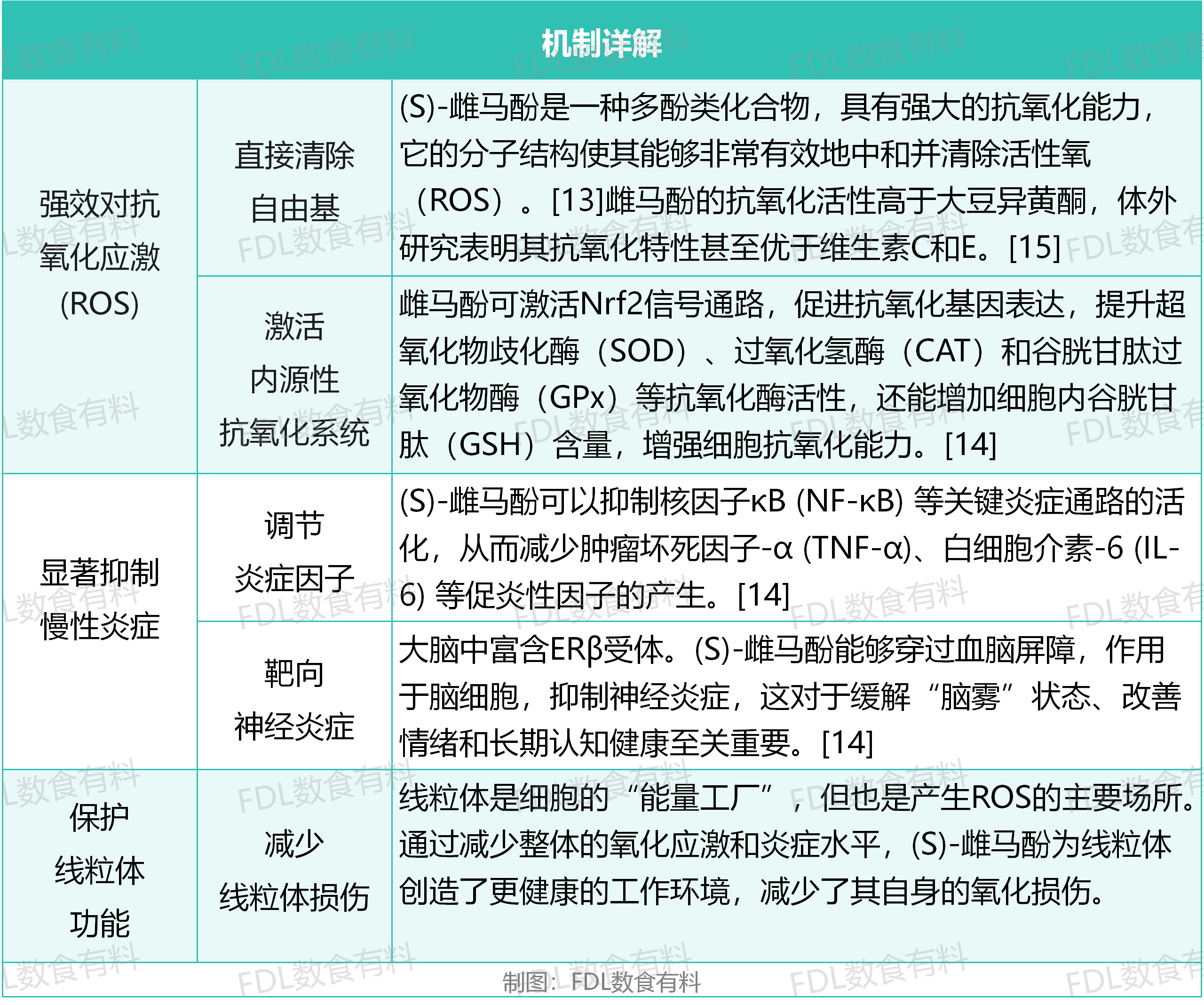 此外,S-雌马酚不仅具有类似雌激素的调节功能,还在抗氧化、抗炎以及维持线粒体稳态等抗衰老方面展现出显著作用。
