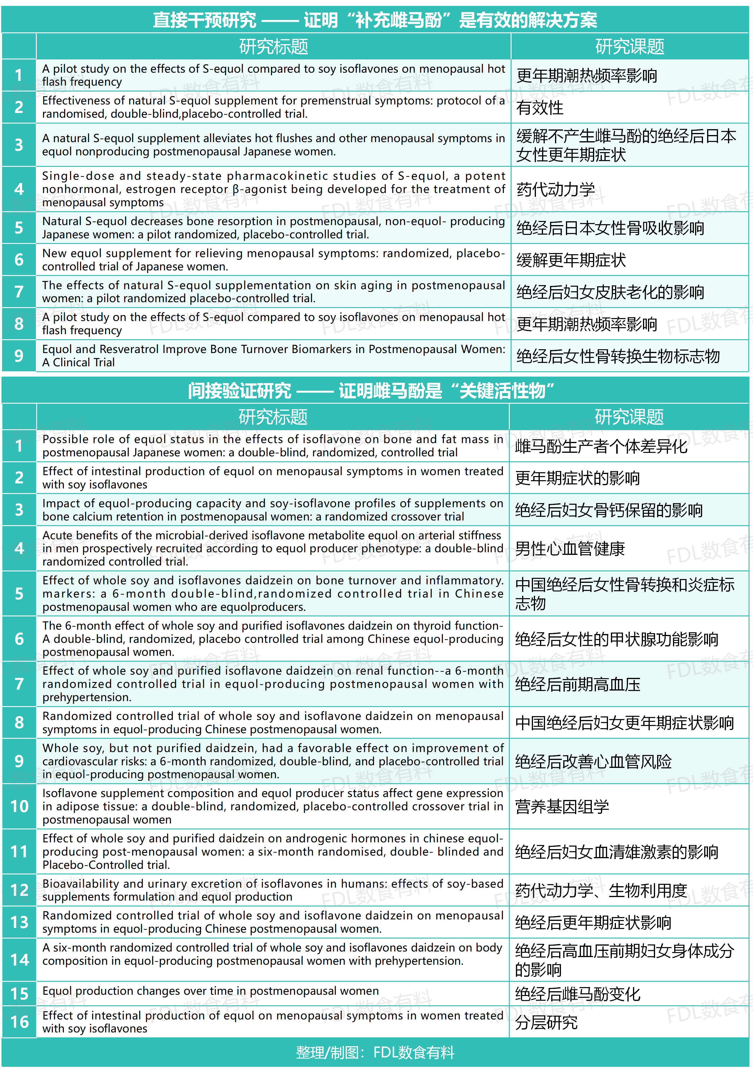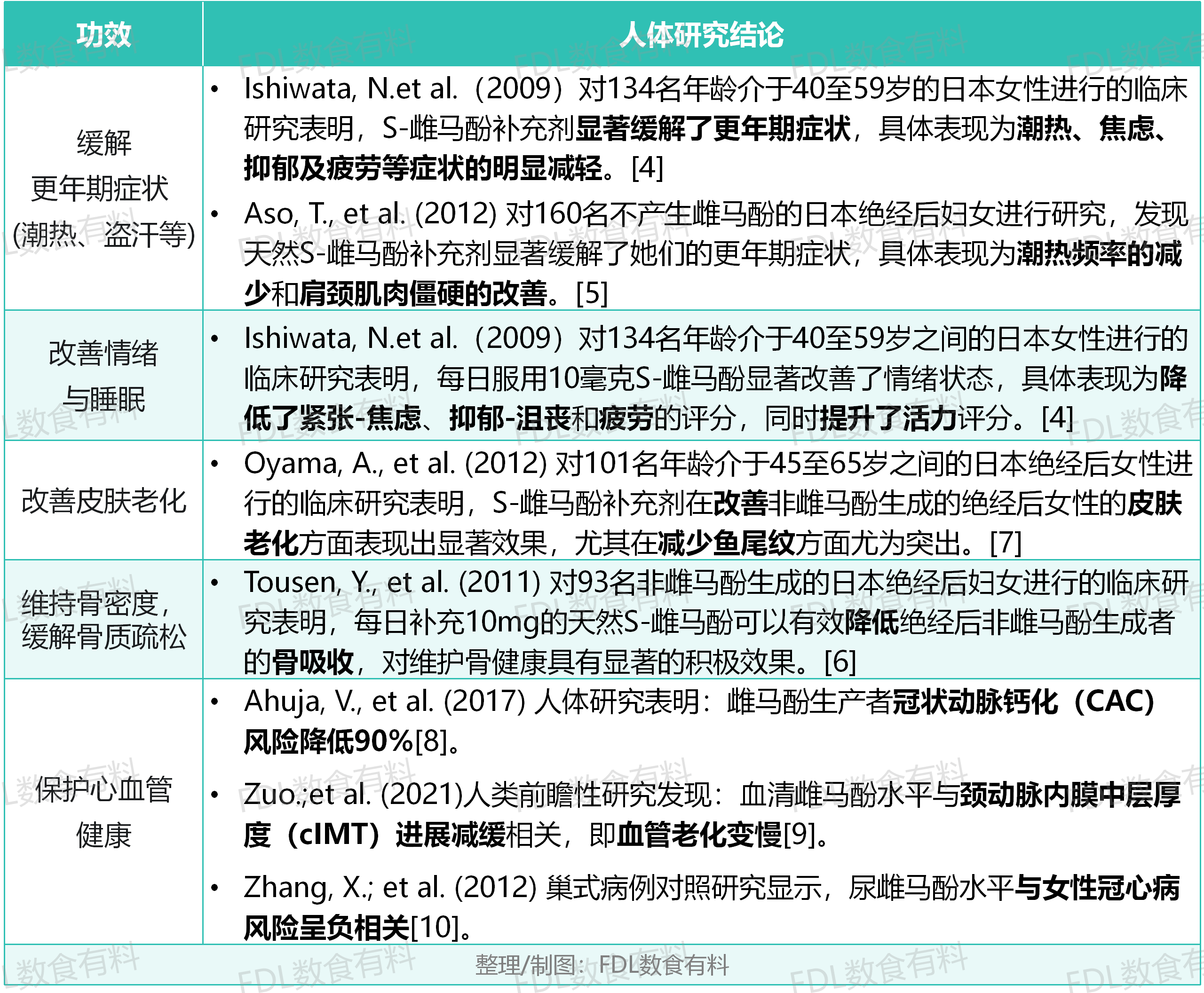 以上提及的多维功效并非空谈,其背后是全球科研人员历经数十年的深入探究。为了更直观地展示S-雌马酚的科学严谨性,FDL数食有料系统汇总了关键的临床研究成果。